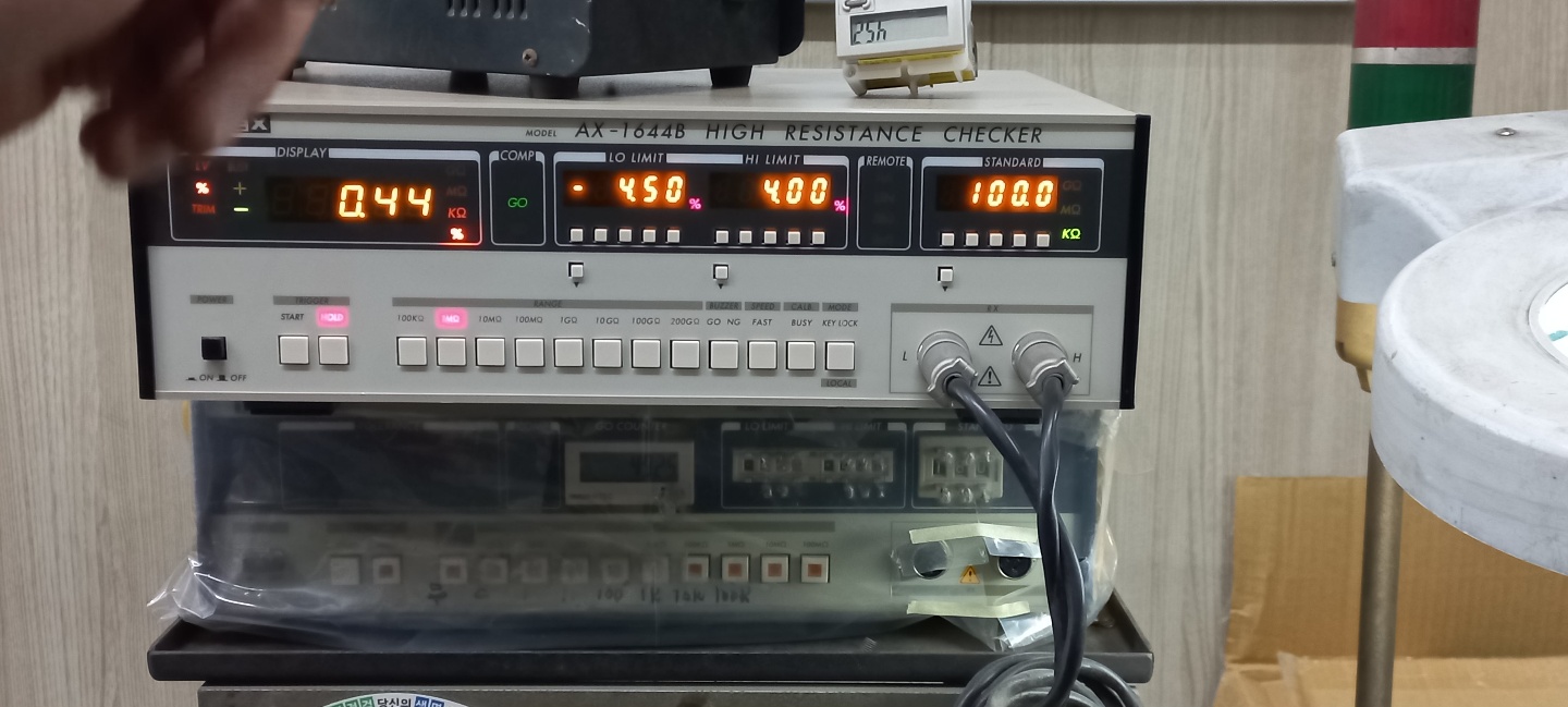 1MΩ(메가옴) 레인지에서 기준저항값 100KΩ(킬로옴저항) 코팅 콘베이어 자동화기기 측정